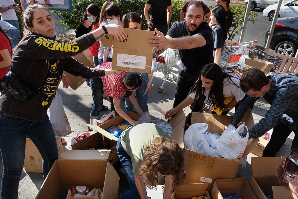 Сбор предметов первой необходимости для фронта и беженцев в Ереване. (Photo: Winslow Martin/Eurasianet)