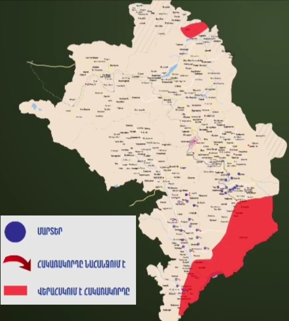 Сегодня впервые Министерство обороны Армении опубликовало собственную карту боев. Выглядит эта карта следующим образом.