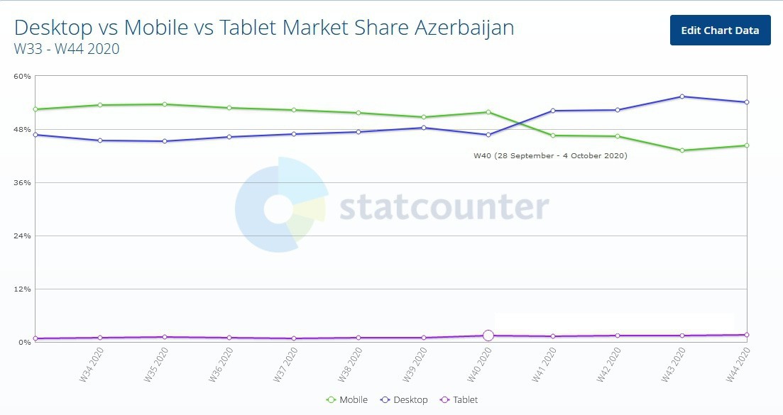 График 5. Еженедельная динамика потребления онлайн-контента в Азербайджане по типу устройства (данные StatCounter).