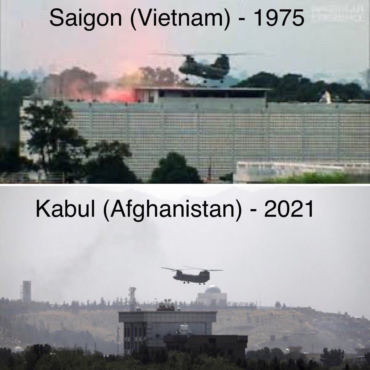 Сравнения нынешней ситуации с поражением проамериканского Вьетконга во Вьетнамской войне начались еще до окончательного вывода американских войск. Месяц назад президент Байден заявил, что повторения Сайгона (Хошимина) 1975 года не будет; наоборот, в отличие от Северного Вьетнама, Талибан куда слабее, а у правительственной армии 300 тысяч бойцов. Тем не менее, когда талибы начали входить в Кабул, картинка стала неприглядной.