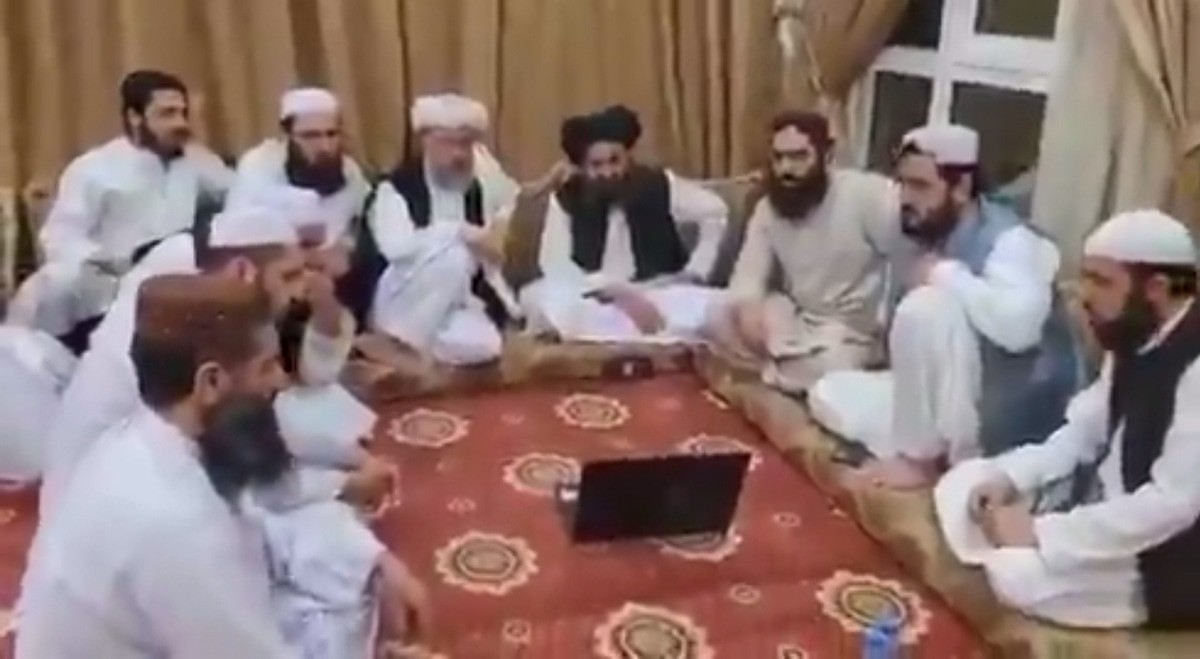 Мулла Барадар смотрит онлайн процесс занятия президентского дворца.