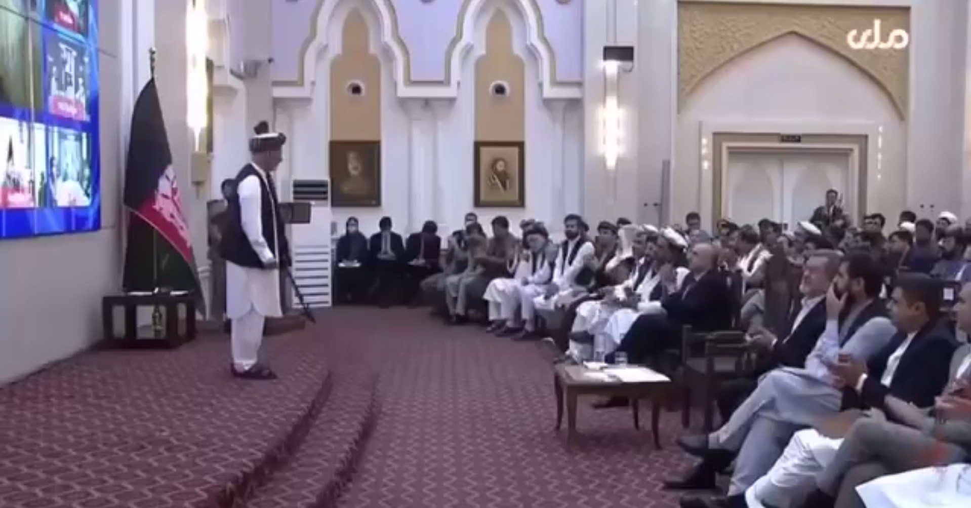 Президент Ашраф Гани 17 мая выступил с заявлением, что в отличие от ... он никуда бежать не будет и будет воевать до конца. С такими же заявлениями он выступал вплоть до начала августа. На фото предположительно выступление 5 августа.