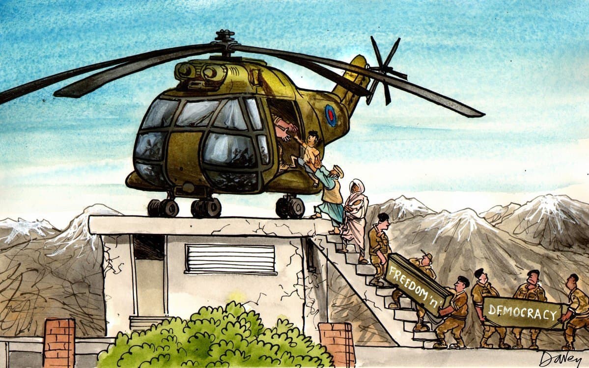 И если до 15 августа эвакуация выглядела не очень красиво по отношению к американским ценностям (карикатура от 13 августа)