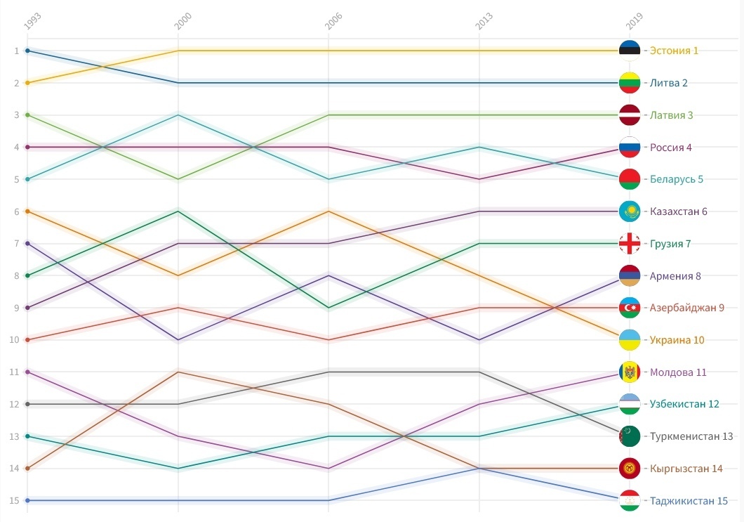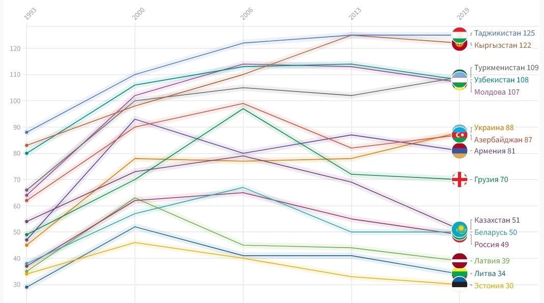 Ниже представлены графики тенденций постсоветских республик в рейтинге для большей наглядности.