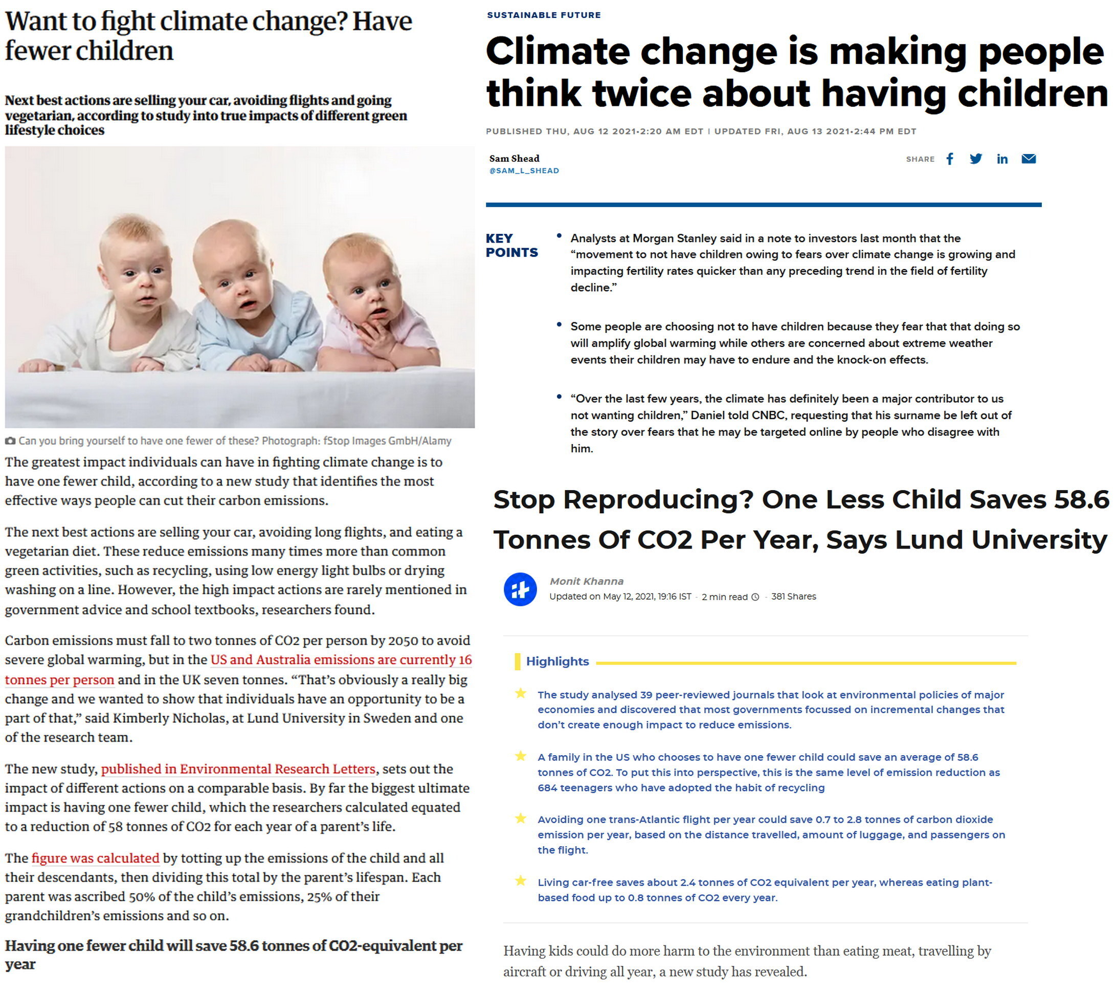 Ил. 6. Коллаж из газетных заголовков на тему рождаемости и углекислого газа