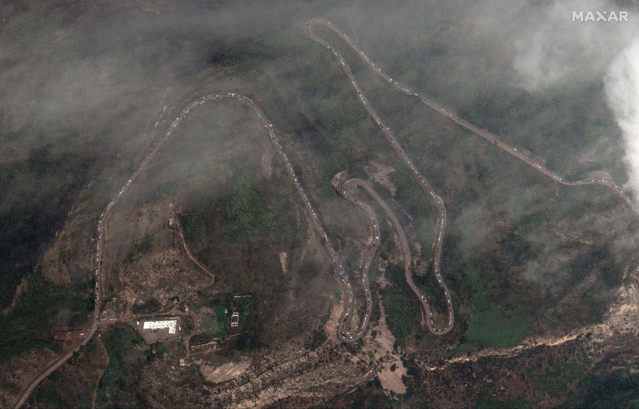 Полностью покинули свои дома жители Мартакертского района. Они выехали частично в Степанакерт, частично уже въехали в Армению. Также свои дома покинули жители Мартунинского района, прибывшие в Степанакерт, а также часть жителей Аскеранского района. Пробка из автомашин растянулась на десятки километров: узкие горные дороги не имеют такой пропускной способности. Так выглядит эта пробка вблизи:
