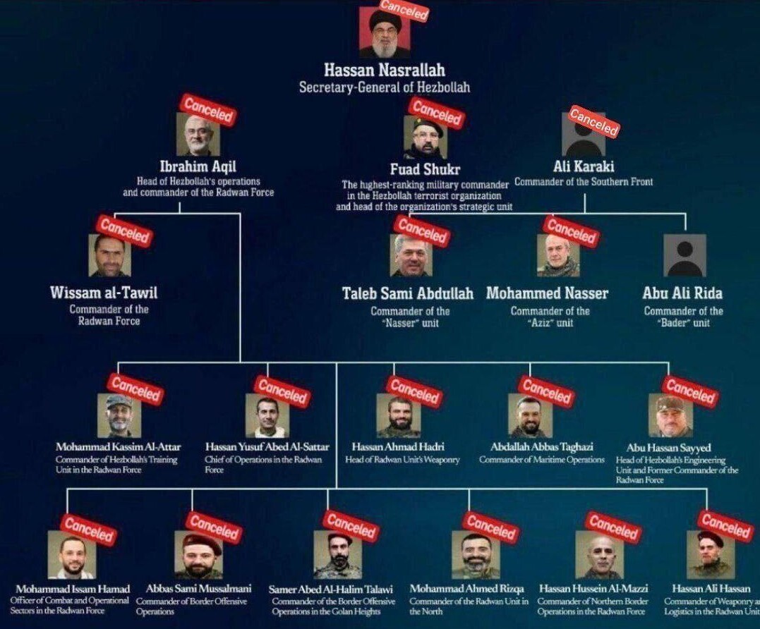 Израильская инфографика, демонстрирующая ликвидированных командиров «Хезболлы»