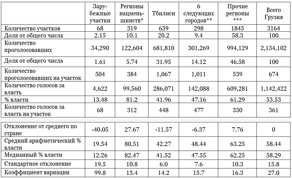 Таблица 2. Результаты выборов в Грузии, по основным группам участков