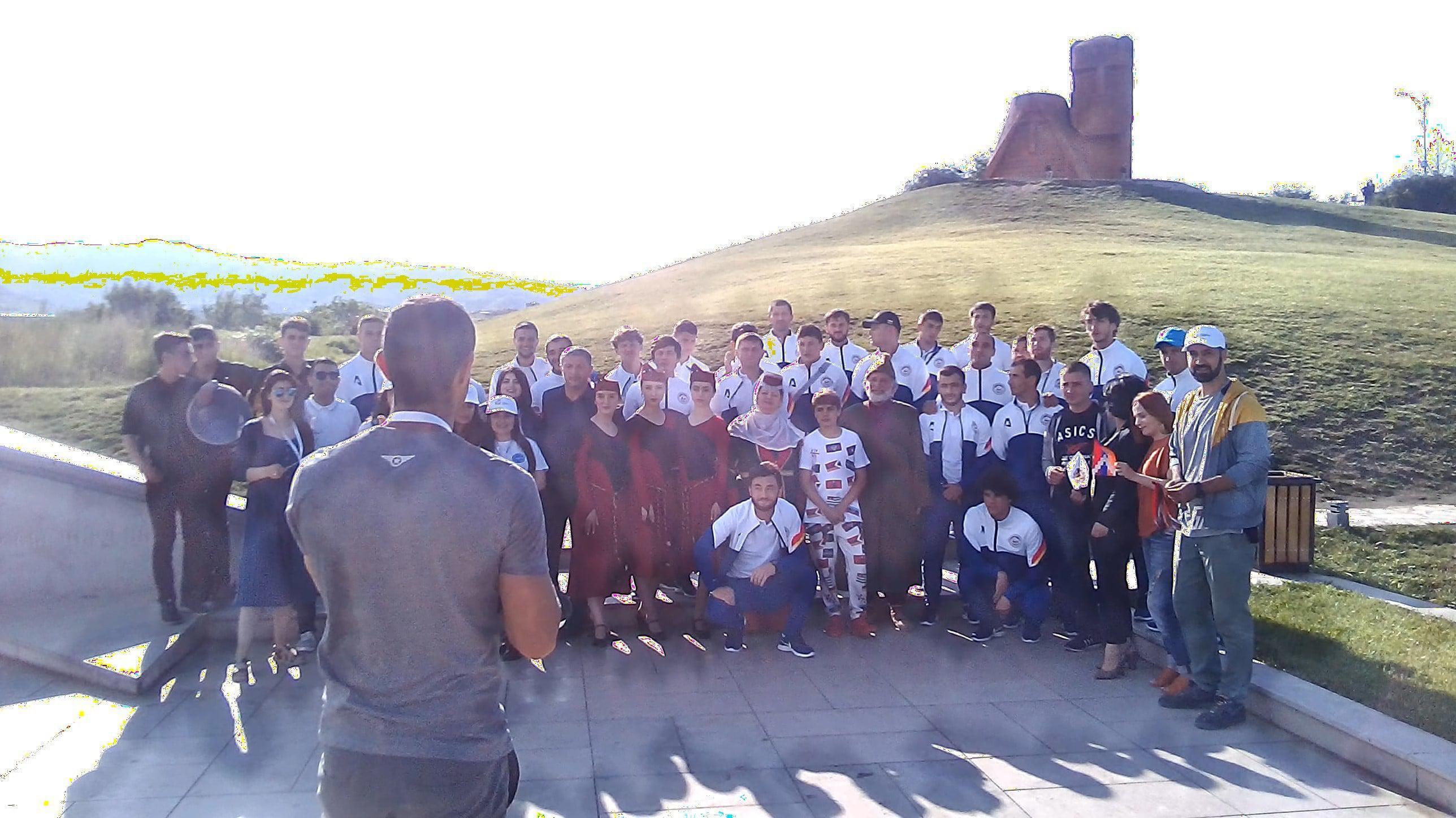 Автобус с командой из Южной Осетии, я встретил около нашего знаменитого памятника " Дед да баба".