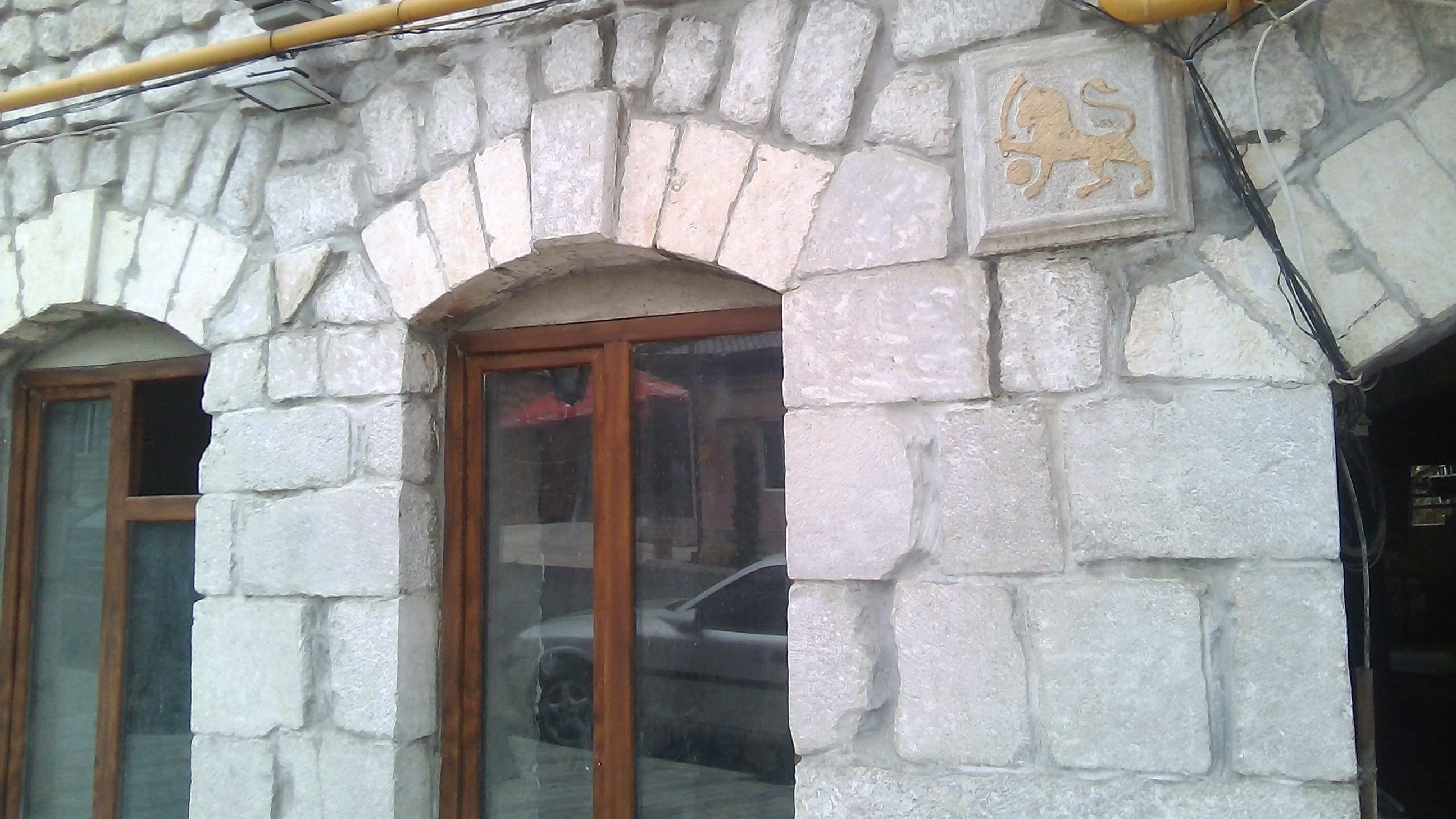 Улица буквально преобразилась. Герб старого дома со львом, их два, по обе стороны от арки.