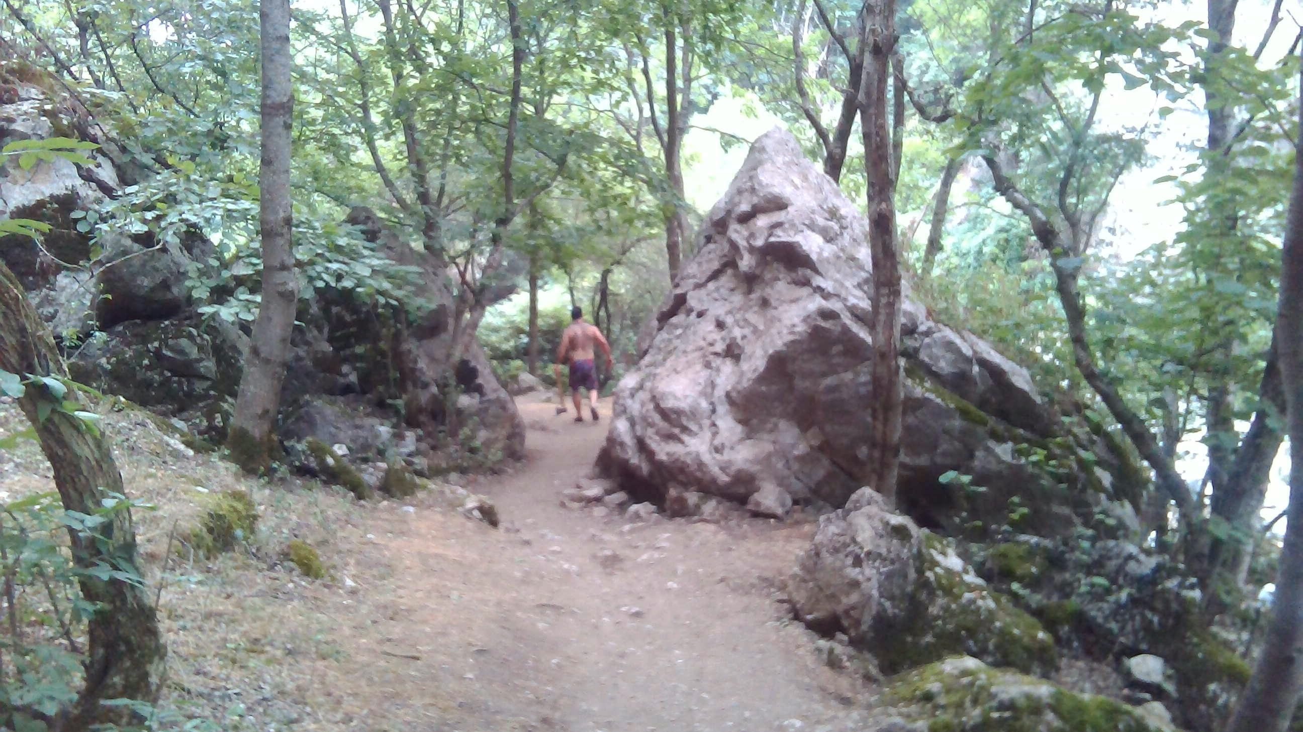 Машину надо оставлять, дальше  пешком, км. полтора  по тропинке через лес, в ущелье.