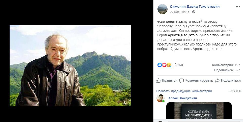 Ладно, лучше поздно чем никогда, а чего пожадничали и Левону Айрапетяну тоже не дали Героя. Больше тысячи людей откликнулось,чтобы поднять этот вопрос. Не увидели?
