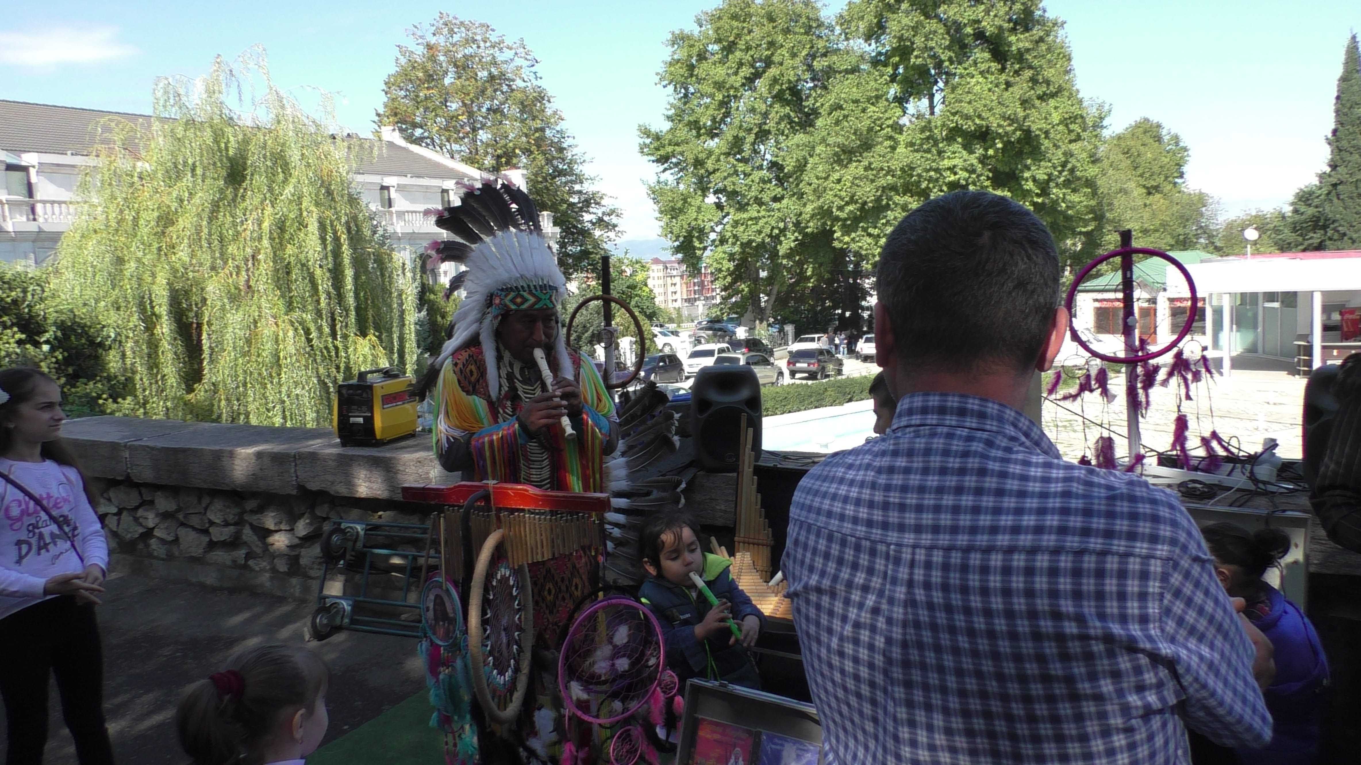 Играл на своей свирели индеец со своим внуком, люди потом подходили и фоткались с ним на память.