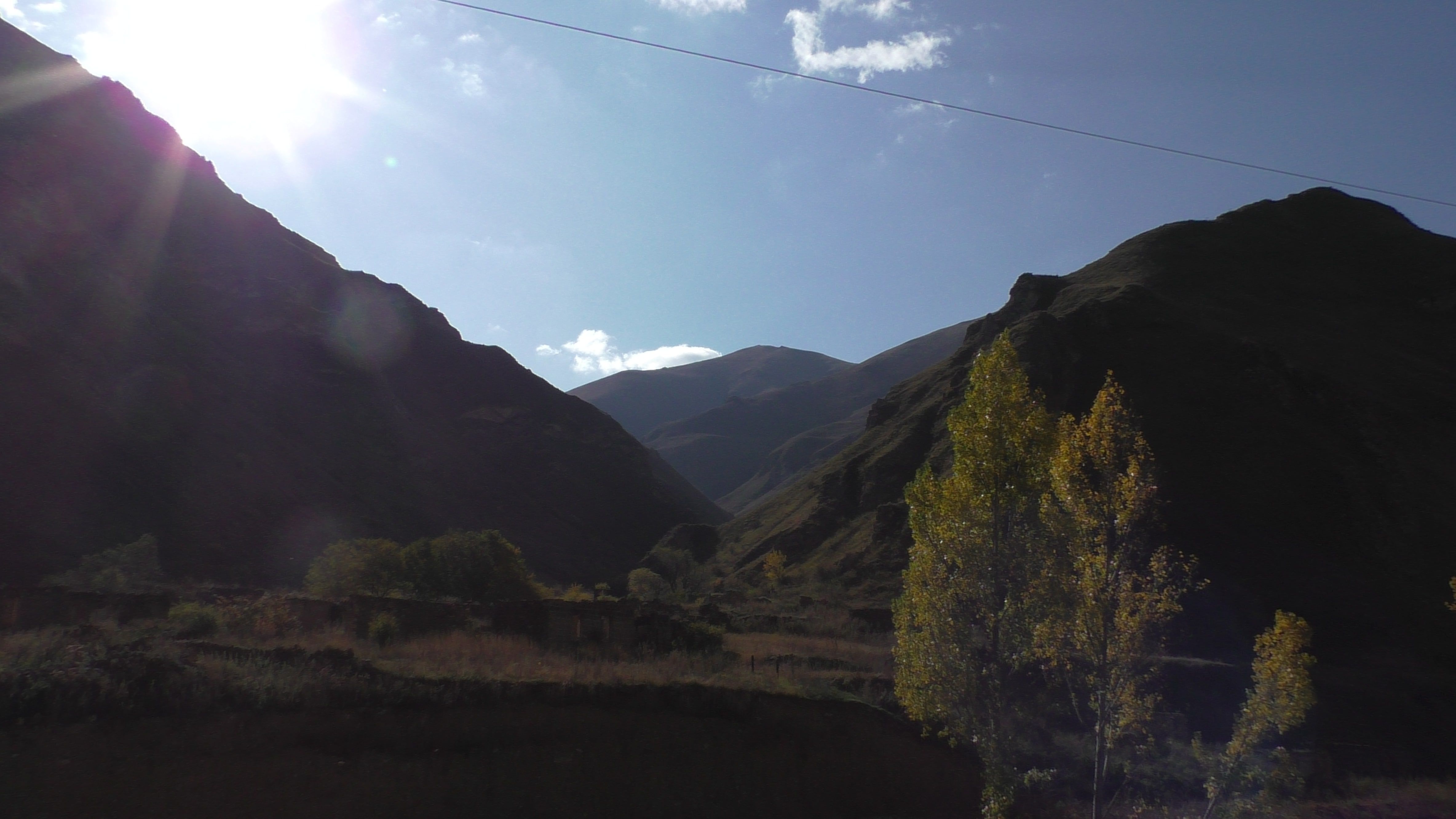 Люди конечно же живут в этих горах, но это скорее отдельные хозяйства. Как они тут живут? Земля благодатная, горы вокруг, но нет недостатка воды. Такое ощущение, что деревья даже на камнях растут. Недостакта в фруктах тоже нет, воткни сухую палку в землю, дерево вырастет.