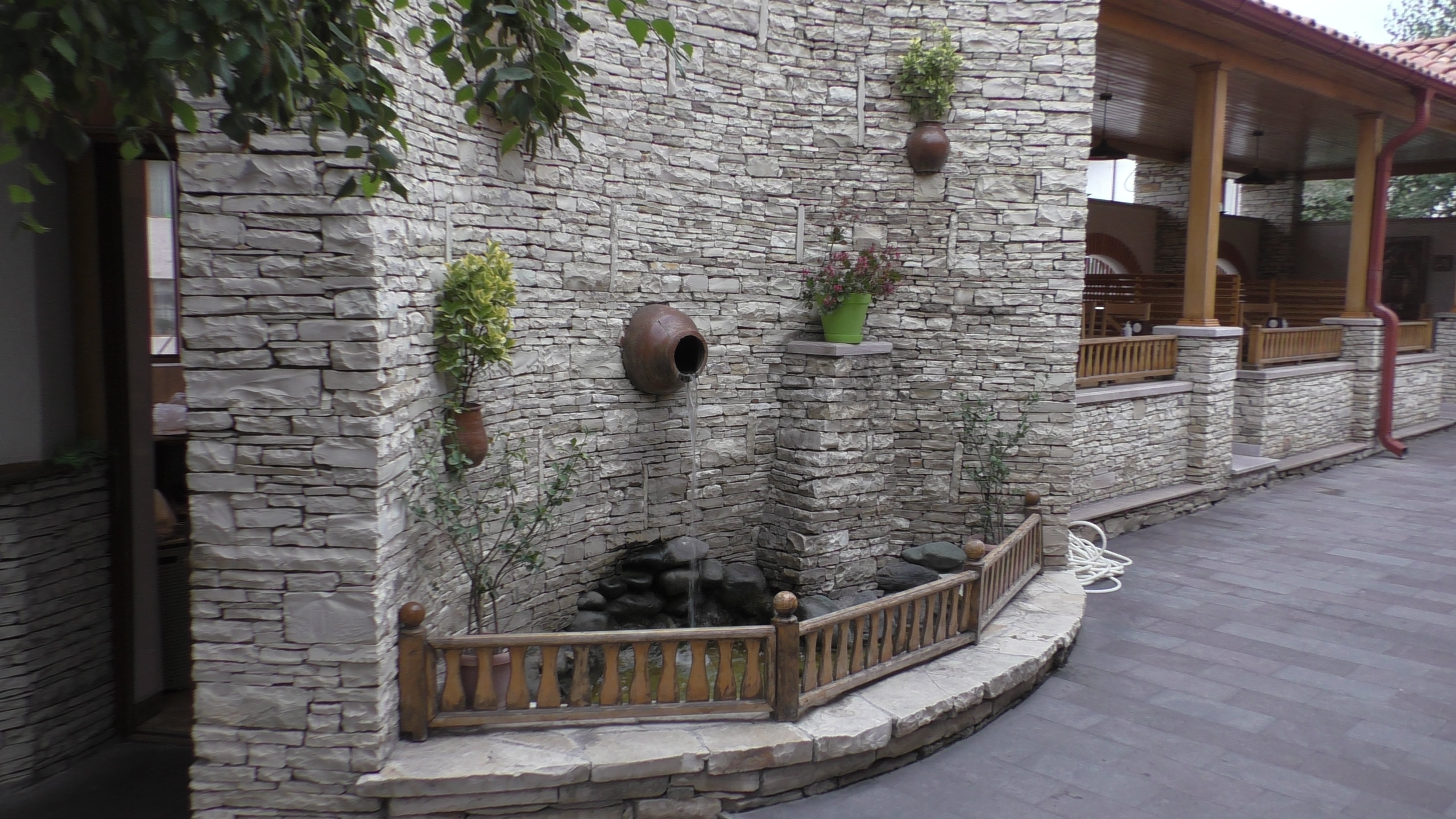 Зато камни оказались нужны в Степанакерте. Эти стены-опоры находятся в ресторане "ЛС", хозяин которого додумался привезти и построить свое заведение из натуральных пластовых камней.