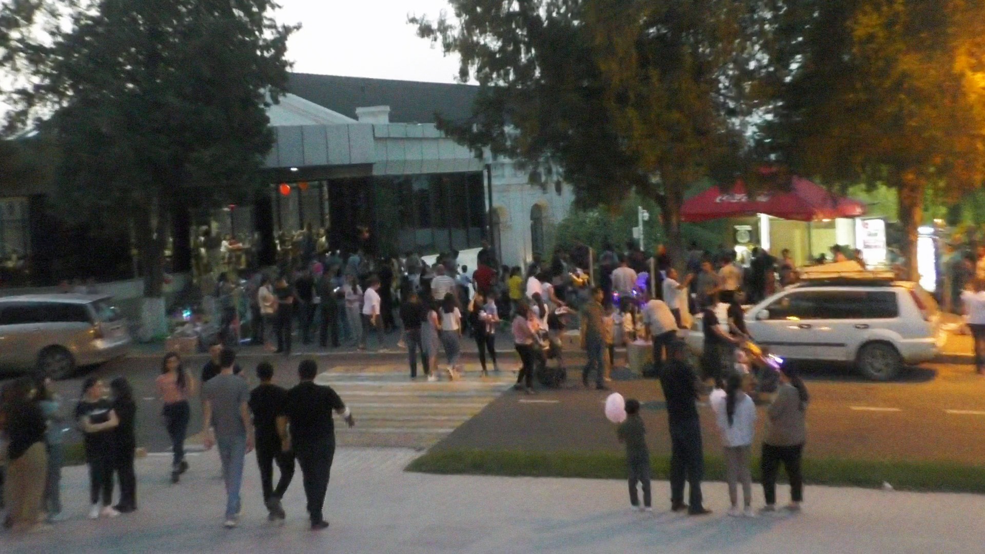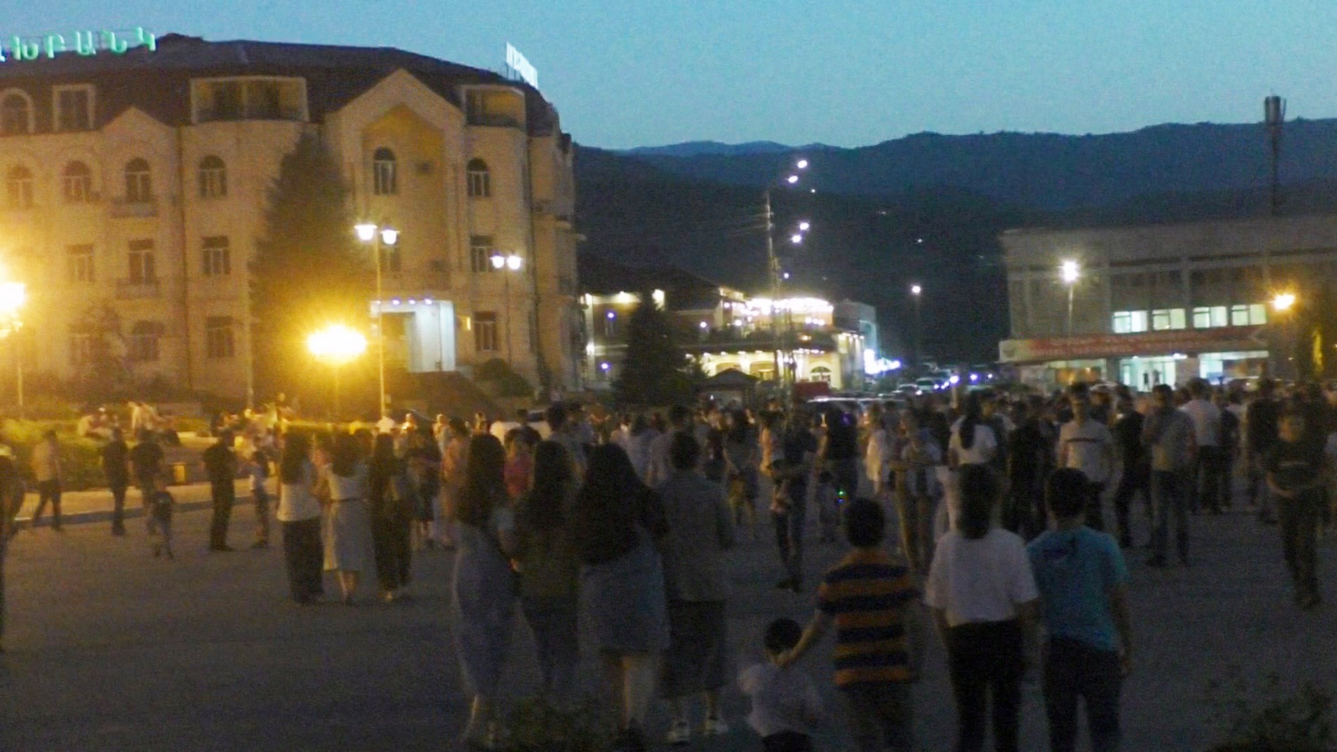Вечером, когда летняя жара немного спала, большинство горожан с детьми вышли прогуляться. Очень многолюдно для послевоенного Степанакерта. ГАИ перекрыло подходы к центральной площади, чтобы не создавать пробок.