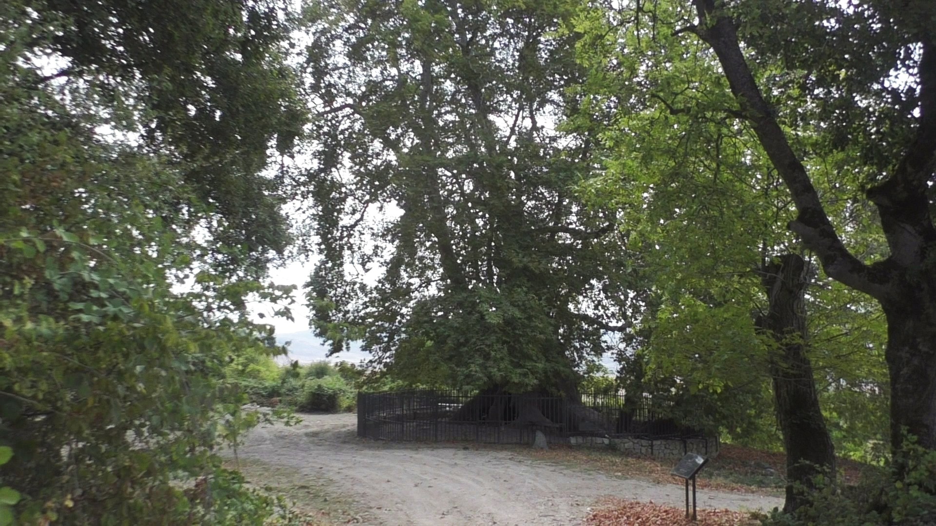 Тнджири цветет, дерево великолепно, оно, как и прежде впечатляет своими габаритами. Замок на заборе был открыт, заходи кто хочет, огорчило лишь то, что родник, питающий корни платана, высох. Надеюсь, после осенних дождей, родник снова наполнится водой и явление это временное...