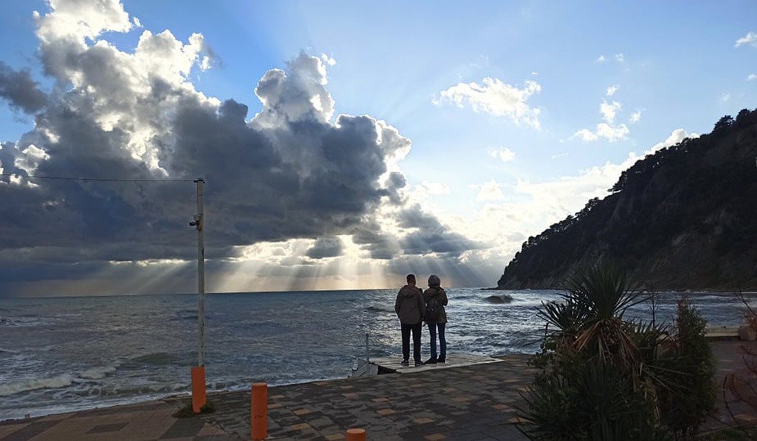 Осень - сезон дождей, но мы все-таки поехали на море и там произошло маленькое чудо, мрачно хмурые облака в небе расступились, дождь внезапно прекратился и засияло солнце. Море показало, что оно нам радо. Зашли в воду, искупались, поймали свою волну и почувствовали вкус соленной морской воды.