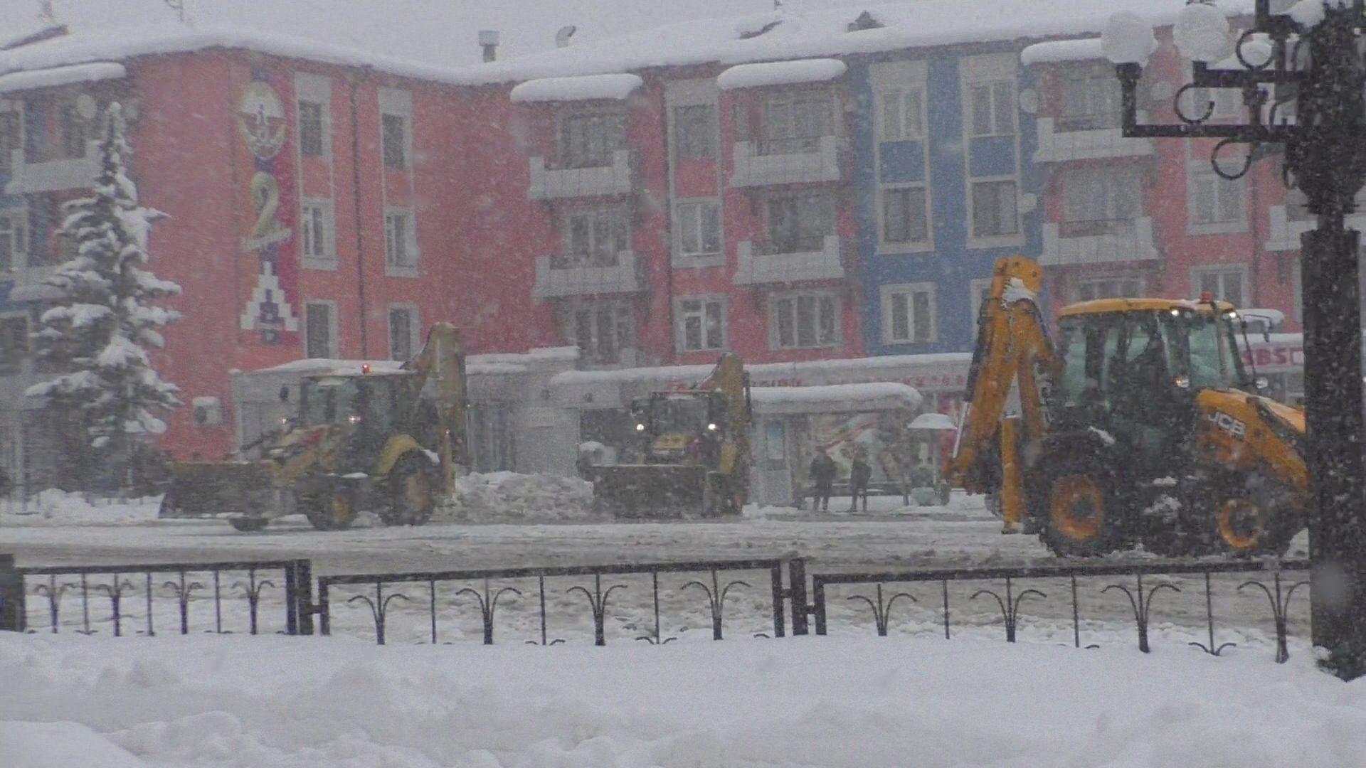 Вышел в город, в такой день лучше пешком, хоть техника усиленно очищает дороги, но снега много и машины буксуют. Маршрутки не работают, но в целом город живет своей жизнью, с появлением газа и хлебопекарни заработали.
