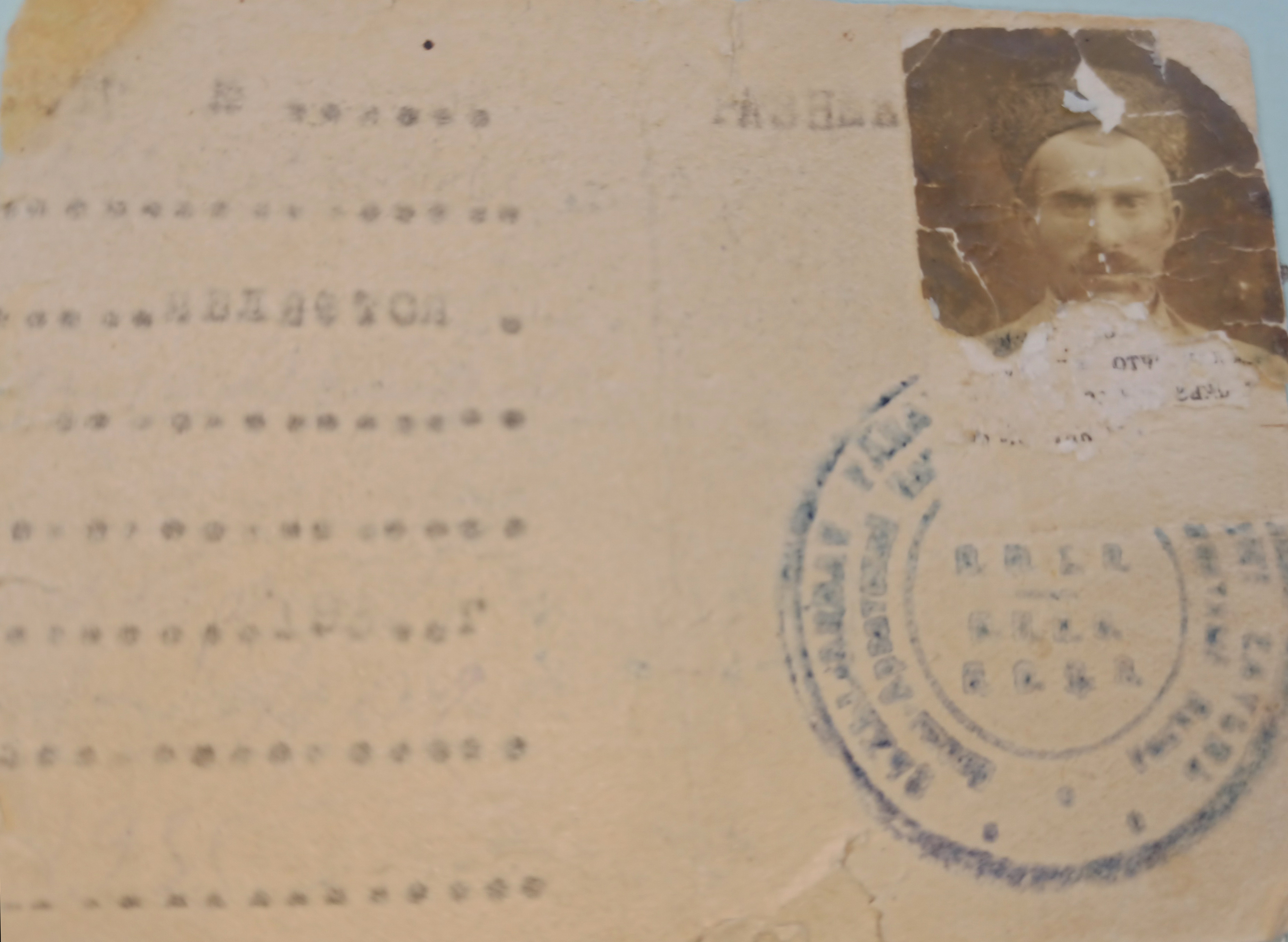 Удостоверение с фотографией, интересно, какой это год и для чего предназначалось это удостоверение. Чернила от ручки выцвели, надпись  нечитаема