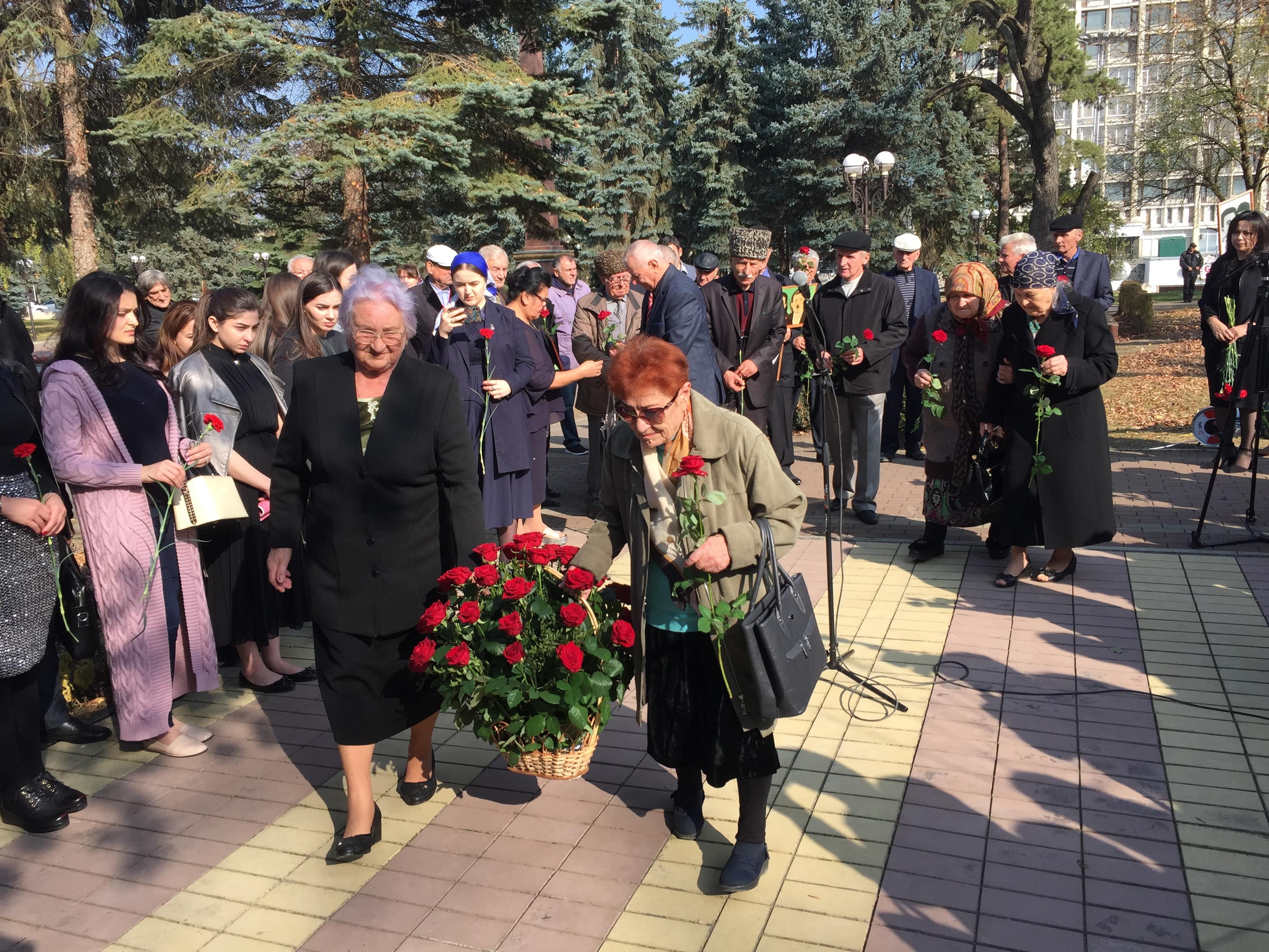 Здесь при падающих осенних листьях, собравшиеся, постояв с печальными лицами, послушав выступления председателя общественной организации репрессированных Маркса Шахмурзова и балкарского старейшину Исмаила Сабанчиева, возложив  к памятнику красные гвоздики, расходятся.