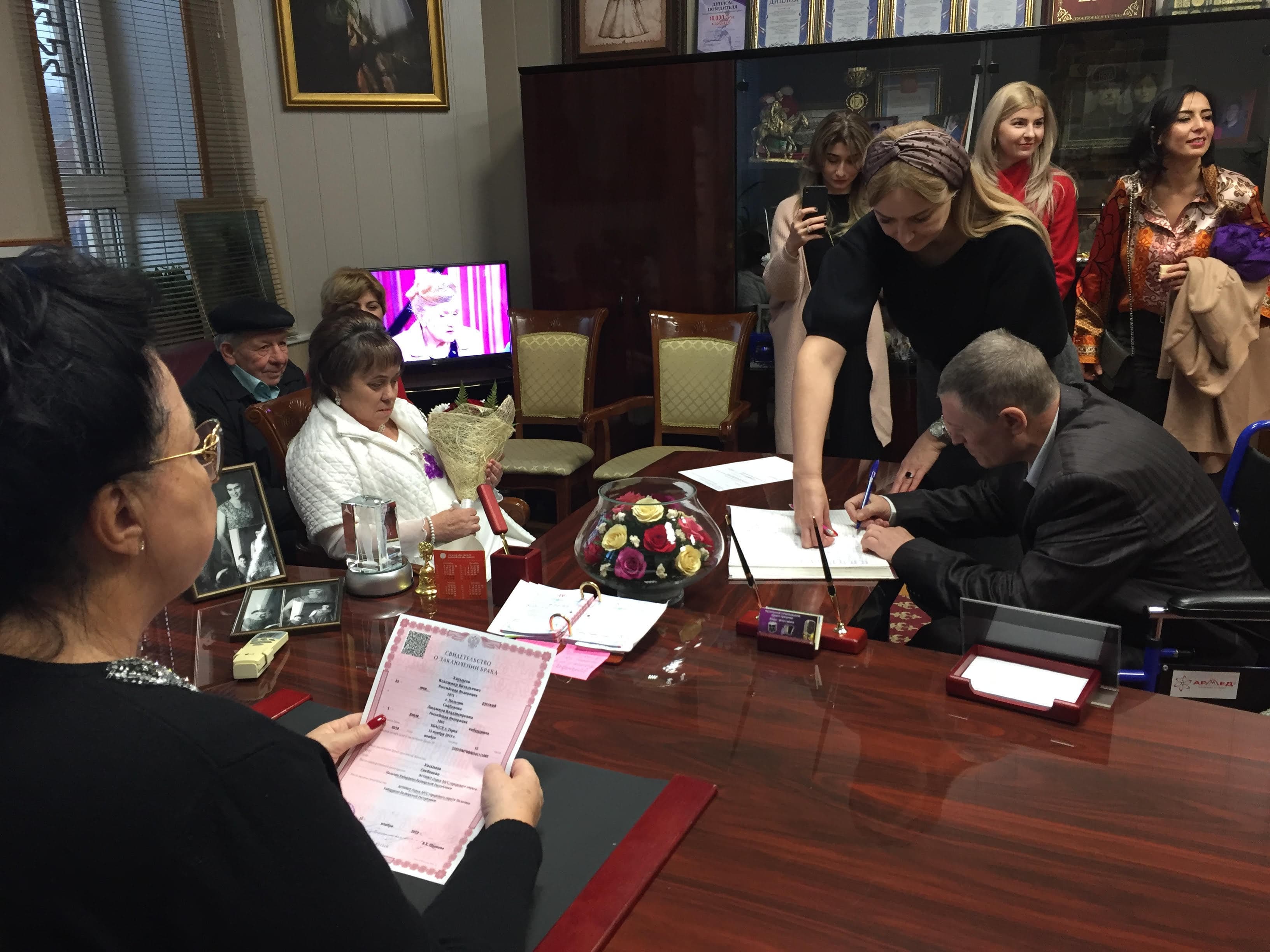 Владимир и Людмила  решили скрепить свой семейный союз не только мусульманским браком, но и гражданским, зарегистрировав свой союз в загсе. Церемония бракосочетания в загсе прошла у них сегодня. В эти дни они принимают поздравления. Мы тоже поздравили обе семейные пары. Мы - это я, и группа волонтеров во главе с нальчанкой Залиной Алтуевой, которые решили скинуться и навестить жителей "стардома", как в народе называют эту обитель.