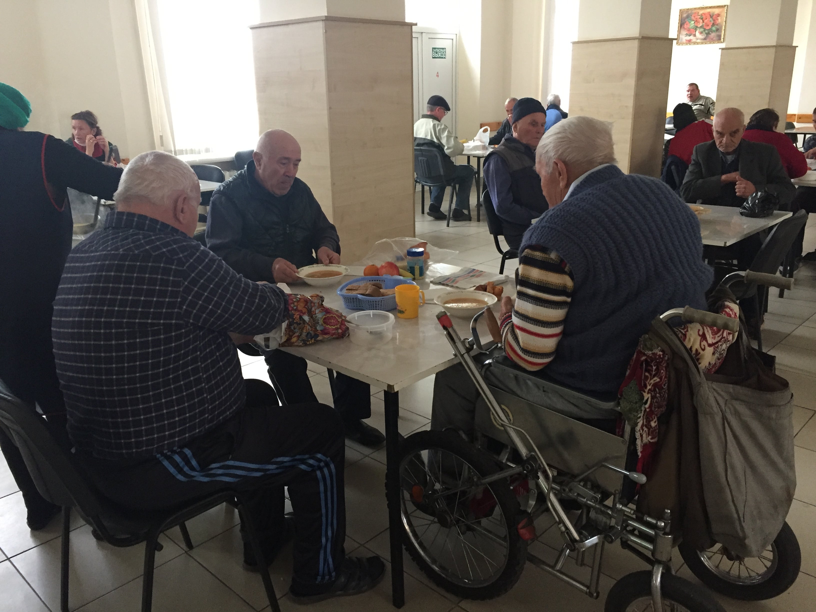 Елена, 80 лет, рассказала, что в интернате кормят 4 раза в день, а поскольку у нее диабет, то ей дают еще и второй завтрак. У нее тоже есть дочь, которая живет в Адлере. Но она в Адлер переехать не захотела, решила остаться в Нальчике, так как привыкла здесь. В стардоме ей нравится.