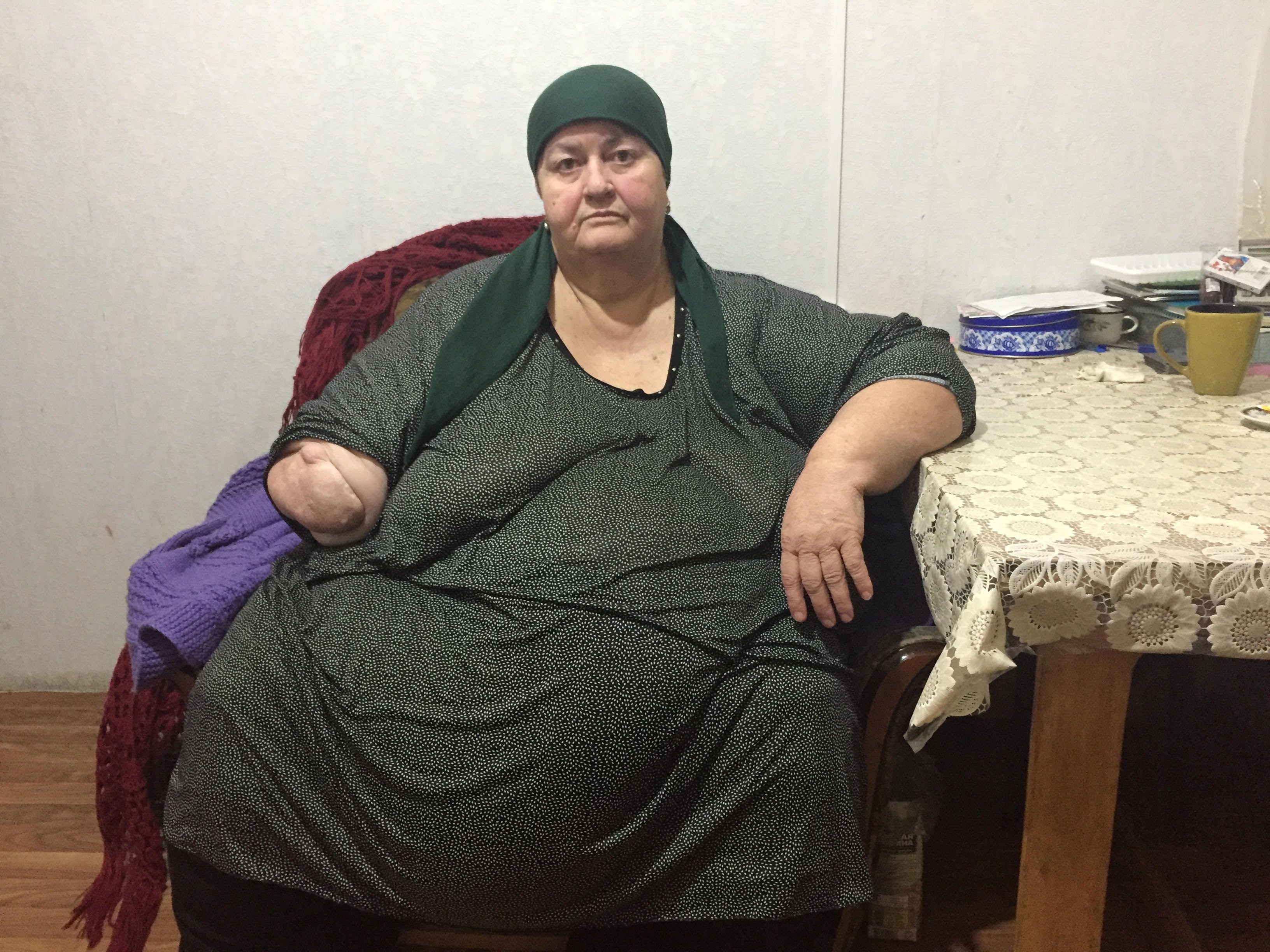 Асият не может свободно передвигаться, сидеть на обычном стуле, спать в обычной кровати. Она не может носить одежду, которую продают в магазинах,  даже самый большой размер ей мал. Все, чем она пользуется в быту, изготовлено по индивидуальному заказу. Несмотря на то, что Асият всего 62 года, что, на мой взгляд, не очень большой возраст, у нее есть большие проблемы со здоровьем, она инвалид первой группы.