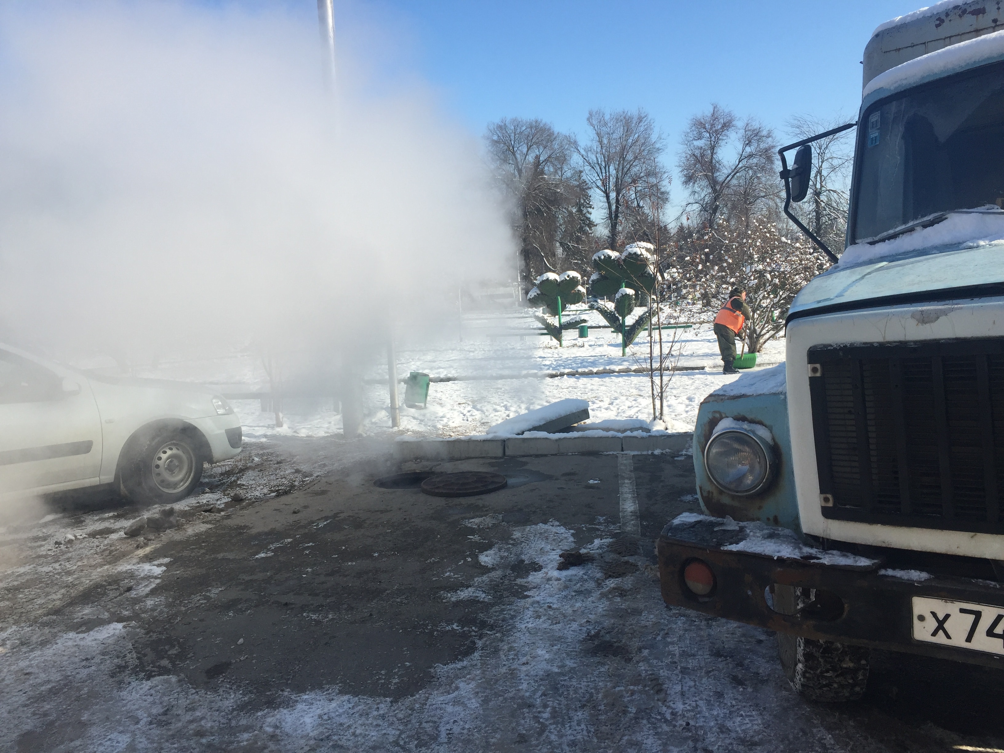 Особо подчеркиваю, что за этот отопительный сезон данное отключение - одиннадцатое по счету. Три дня сидим в тепле, два дня – в холоде. Либо наоборот, два дня в тепле, три дня – в холоде. Почему это происходит, видно невооруженным глазом. То тут, то там из теплотрассы наружу начинает вырываться горячий пар. Это говорит о том, что в данном месте лопнула труба теплопровода и горячая вода уходит в землю.  Потом приезжает машина аварийной службы,  открывают люк, выкачивают  воду и  начинаются работы по ремонту  трубы.