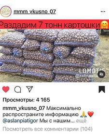 Руслан Бжеников и Аслан Маремшаов, два друга из Зольского района планируют раздать семь тонн картофеля жителям Нальчика, Нарткалы и Баксана. Картофель, в количестве 200 мешков мешков, они будут передавать нуждающимся гражданам, а также многодетным семьям.
