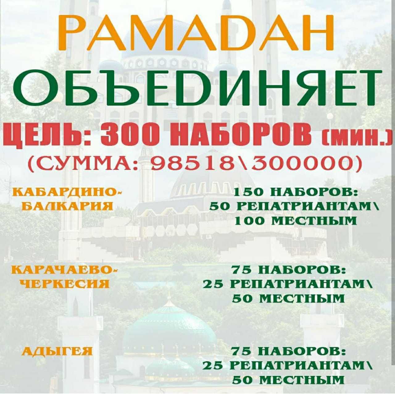 К окончанию месяца Рамадан «Черкесский ренессанс» планирует благотворительную акцию для  300 семей из КБР, КЧР и Адыгеи, среди которых черкесские репатрианты, инвалиды, одинокие старики. Детям детских домов и интернатов подарят игрушки и конфеты.