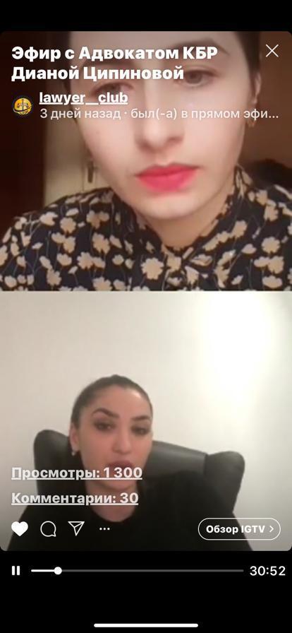 25 мая адвокат Диана Ципинова, одна из трех адвокатов, к которой в ночь на 21 мая была применена физическая сила в Урванском районном отделе полиции, в прямом эфире режима онлайн ответила на вопросы  вице-президента клуба Мадины Воруковой.