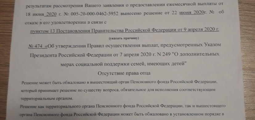 Управление пенсионного фонда в Майском районе отказало ему в социальных выплатах на ребенка с формулировкой – «отсутствие права отца».