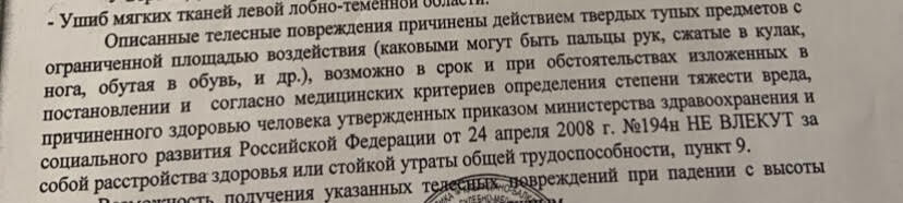 Когда Дина обратилась за помощью в больницу, врачи вызвали полицию. И ей пришлось рассказать, как все было. Ее и ребенка направили на судмедэкспертизу. Судебно-медицинская экспертиза установила наличие у нее и  ребенка телесных повреждений.