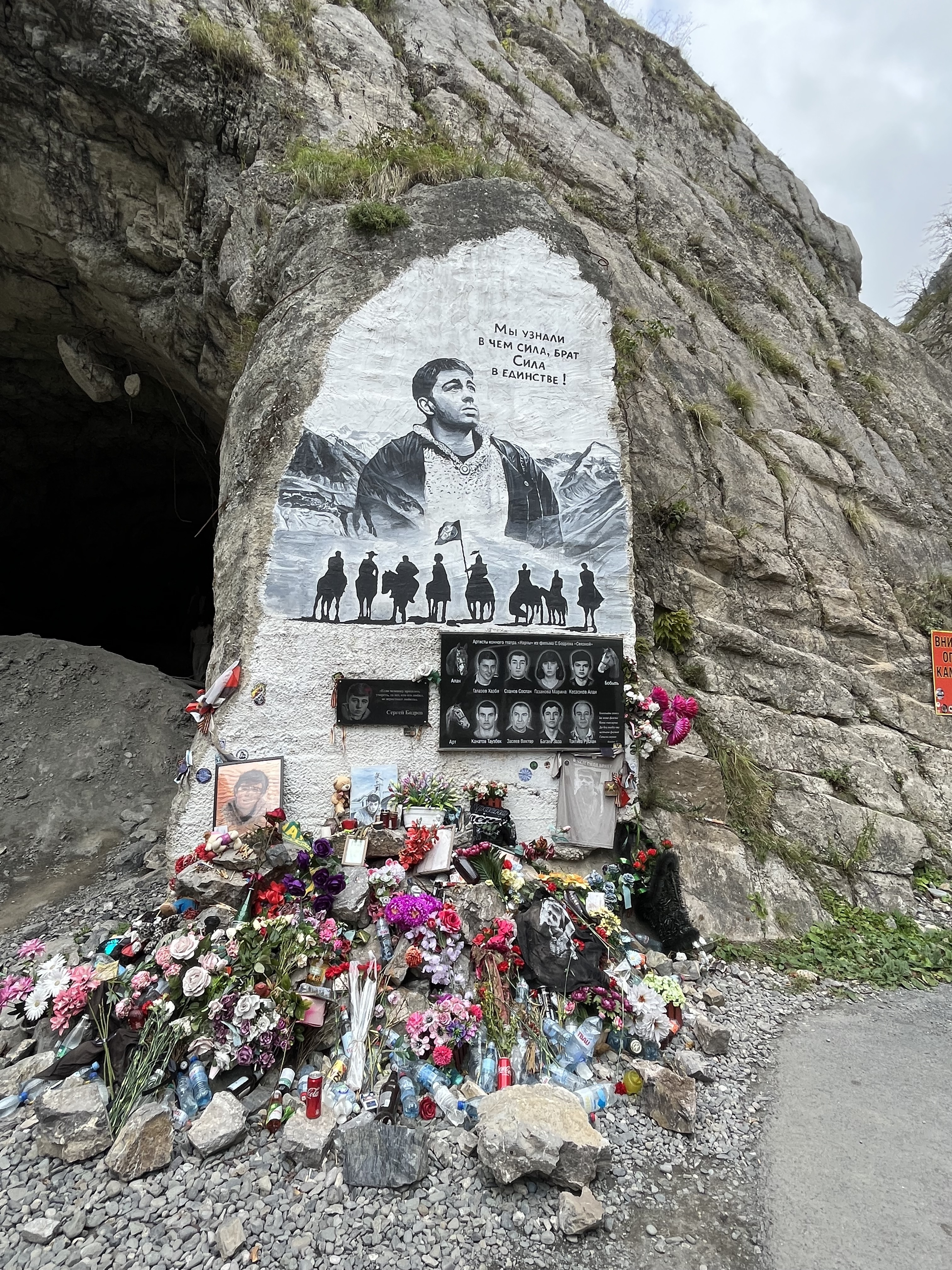 Цитата экскурсовода на этом самом месте: «Здесь погиб Сергей Бодров младший и его съемочная группа. Также здесь погибли актёры конного театра «Нарты», лучшие лошади театра и местные жители». Клянусь, так и сказал, я прям записала это сразу, чтоб не забыть.