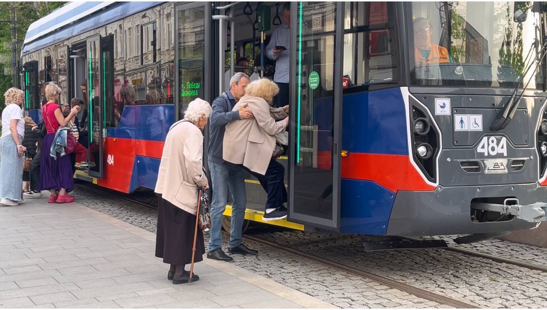 Проблема в том, что у новых трамваев очень высокая ступенька и туда приходится буквально влезать, а обратно спрыгивать. Для пенсионеров это особенно тяжело, а они и есть основные пользователи этого транспорта.