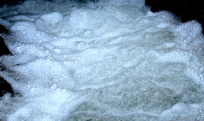 Сделал снимки воды, бурлящей реки, пены, пузырей, веток, цепляющих за жизнь кустарников, паутины.... Даже, в одном из пузырей смог запечатлеть себя, хотя на это потратил около сорока минут...