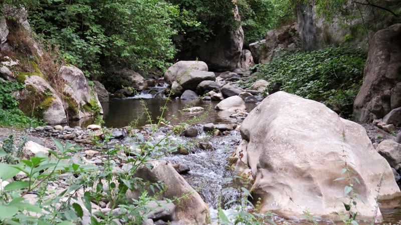 Спустившись по лесной тропинке в ущелье, мы встретили моего старого друга смотрителя этого каньона Славу, беженца из Баку, который, оставив дела на своего помощника, решил пройтись с нами и показать этот маршрут.