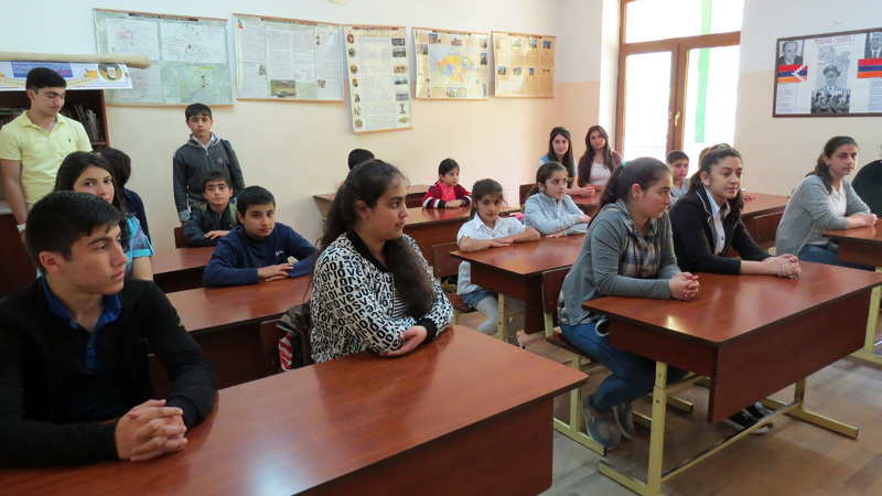 Далее, я пошёл в среднюю школу села Ванк, где встретился с директором школы Варей Авнесян, детишками, язык не поворачивается назвать их беженцами... Со 2 апреля в школу поступило 40 учеников из Мартакерта, Матагиса, Талиша. Дети смогли за короткое время интегрироваться, начали получать высокие оценки, но, как они сказали, хотят вернуться в свои родные школы.