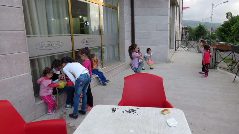 После школы, вместе с Сергеем Баграмяном я пошёл в дом Гриши Петросяна, где проживала его свояченица из Мартакерта Жанна Сардарян, с дочерью Астхик. Жанна воспитатель детского сада. Дом её пострадал от взрывной волны, муж находится на передовой. Ждёт не дождётся, когда сможет вернуться к себе домой и заняться любимым делом – воспитывать ребятишек. Когда вошди в дом, вкусно пахло свежеиспечённым деревенским хлебом. Нас, естественно, угостили...
