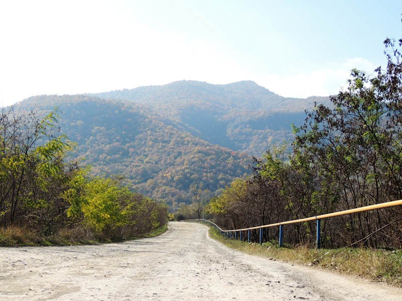 По дороге с левой стороны меня сопровождали горы покрытые осенним лесом... Красота...