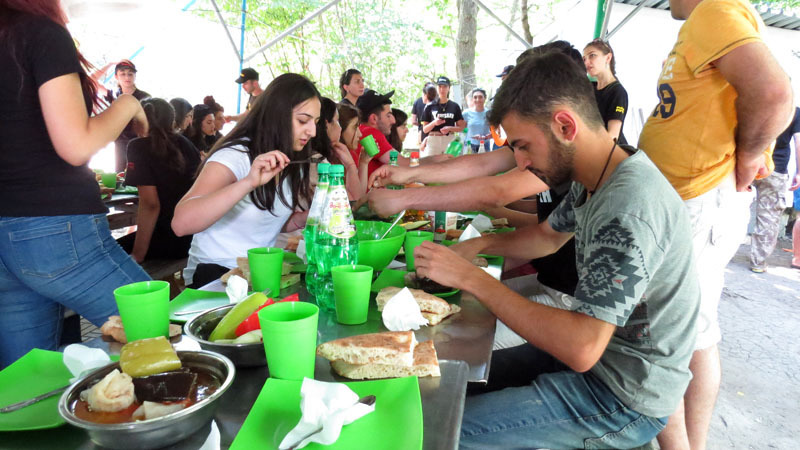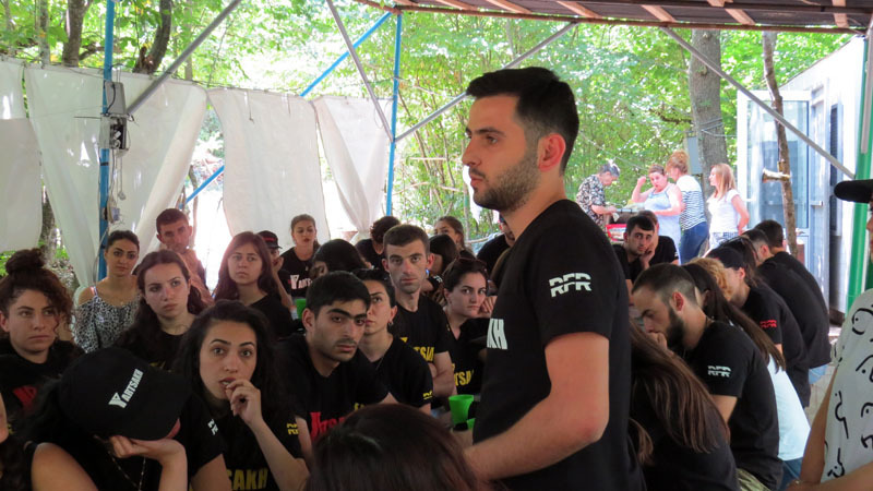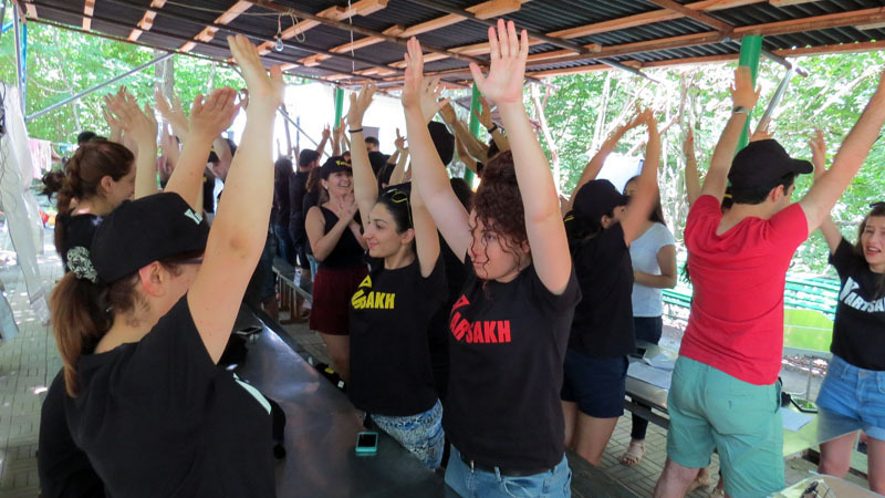 Тренер Татул Бостанджян из Армении, на радость участникам лагеря, обучил их скаутскому кличу.