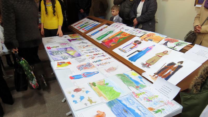 Поэтесса Сильва Маркарян,  вторая справа, рядом со стендом с гадрутскими ребятишками и директором Центра Ириной Тамразян.