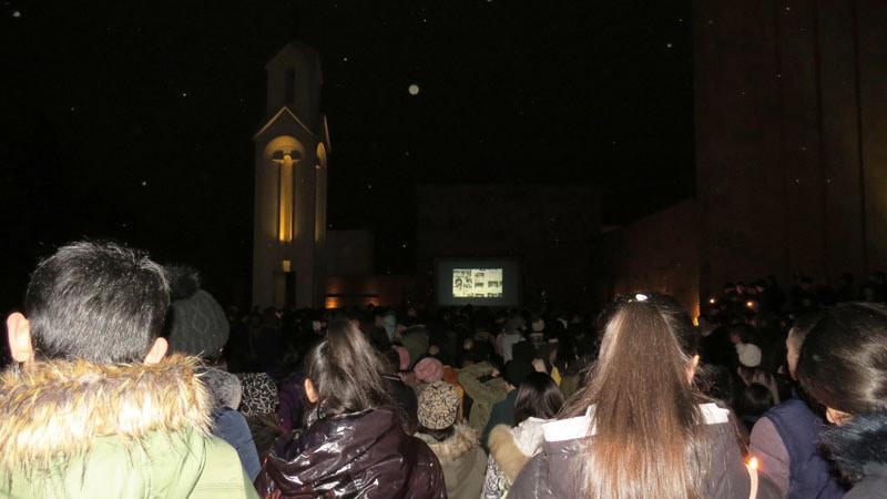 После окончания фильма, настоятель Степанакертской церкви Св.Акопа Тер-Минас провёл заупокойную службу. Люди молились, крестились...