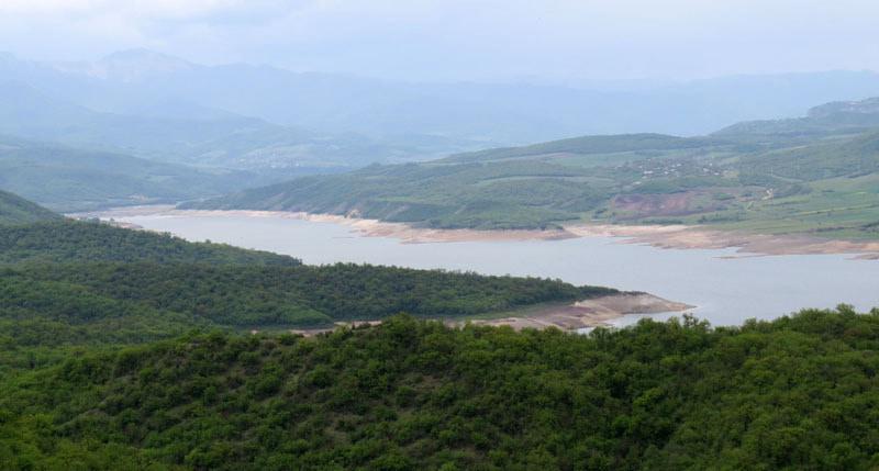 Сарсангское водохранилище ещё в 1976 году было построено на территории Мардакертского района над рекой Тертер. Полный объём водохранилища составляет 560 млн м³, полезный объём 500 млн м³, а мёртвый объём 60 млн м³. Уровень нормального накопления водохранилища 726 м, максимальный уровень заполнения при притоке поводочных вод составляет 728,5 м, уровень мёртвого объёма 662 м, длина водохранилища при нормальном наполнении 11,75 км, ширина 1,75 км, глубина воды в нормальном уровне 103 м. Площадь зеркала на нормальном уровне 1346 га, на уровне мёртвого объёма составляет 270 гектаров. Длина береговой линии составляет 50, 25 км. Высота плотины достигает 125 м при длине в 555,1 м и ширине по верхнему краю в 10,2 м. На водохранилище также расположена двухтурбинная гидроэлектростанция мощностью 50 МВт. При пропускной способности воды каждой турбины в 30 м³/с, данная станция может обеспечить пропуск до 60 м³ воды в секунду...