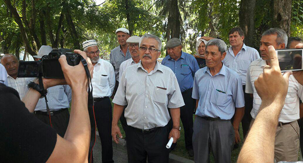 Более 30 старейшин ногайского народа пришли к зданию полпреда президента России в СКФО, добиваясь встречи с Олегом Белавенцевым в связи с политическим конфликтом в Ногайском районе Дагестана.