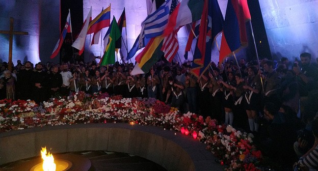 Активисты в Ереване организовали факельное шествие, приуроченное к 110-й годовщине геноцида армян в Османской империи.