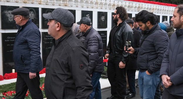 Бакинцы в 35-ю годовщину ввода советских войск в город пришли к мемориалу на Аллее шехидов, чт...