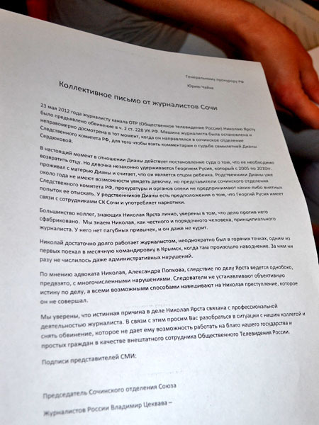 Пресс-конференция, инициированная Союзом журналистов Сочи в защиту прав Николая Ярста. Сочи, 10 июня 2013 г. Фоторепортаж корреспондента "Кавказского узла" Светланы Кравченко