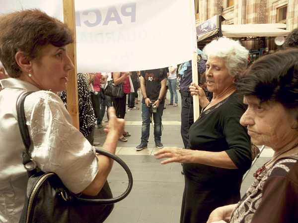 Участники стояли с плакатами «Не поощряйте диктатуру», «Зачем вы приехали?» и другими.